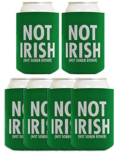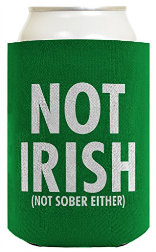 Funny St Patricks Day Beer Coolie Not Irish Not Sober Either Funny St Pats Party Drinking Accessory 6 Pack Can Coolie Drink Coolers Coolies Irish Green