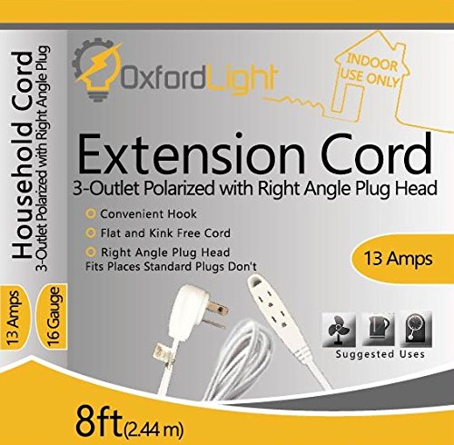 Oxford Light TOP RATED 8-Ft White Extension Cord 3 Outlet Indoor/Outdoor Extension Cord, OL454418 White, Flat Plug Flat Extension Cord, 3-Wire, White, 8-Foot, 16AWG UL Listed