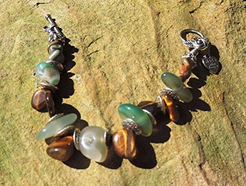 -. Title : Agate, Tiger Eye. Jasper & Pewter Bracelet