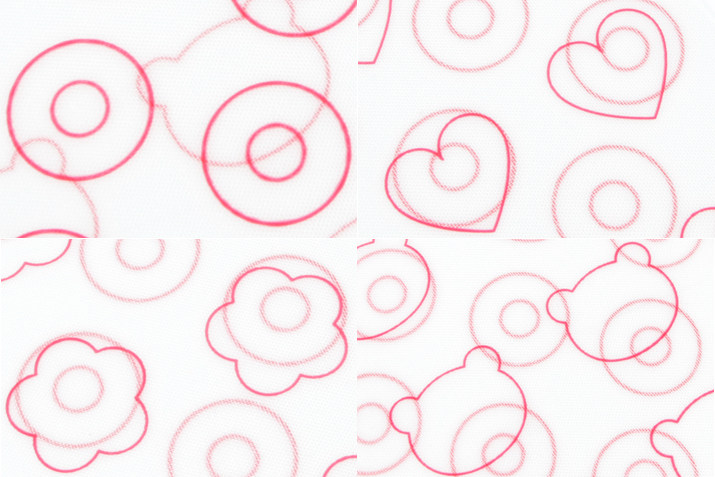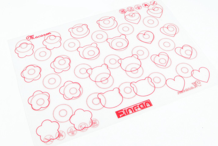 采用进口超密玻璃纤维打底,食品级铂金硅胶覆面,符合欧洲FLGB标准,安全无异味。 有了此款硅胶垫,再也不用担心马卡龙变不出新花样了! 除了标准圆形马卡龙外, 增加心形、小熊和花朵三种形状。 宽度:心形3.4cm,小熊4cm,花朵3.6cm。 大圈直径3.5cm,此马卡龙大小更适合家庭聚会馈赠朋友品尝。 小圈用于定位挤裱花嘴的中心位置,对准中心点可以挤出极致的马卡龙形状。