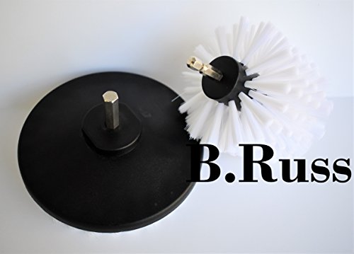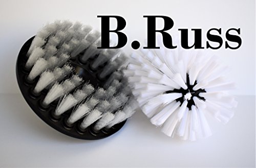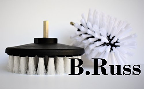 High Qlty Drill Brush, Rotary Brush Cleaning Kit, Set of 2 Brushes, for Hard to Reach Spots, Carpet, Car Mats and Tires, Tiles, Stone, Concrete, Bathroom, by B.Russ (White)