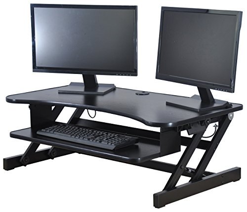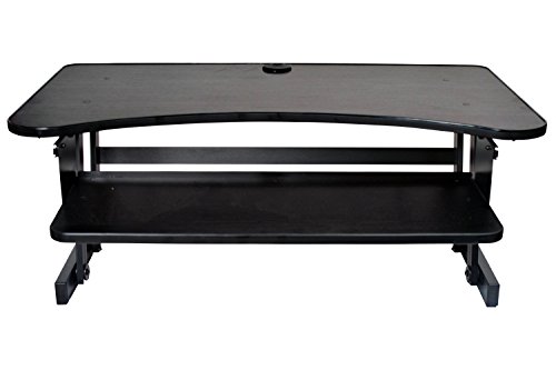 ERGONOMIC KEYBOARD TRAY: Staggered height between keyboard and monitor keeps monitor at proper height to prevent neck strain without manual adjustments sitting or standing, keyboard tray extends for optimum comfort, keyboard dimensions 29.5W x 11.8D inches