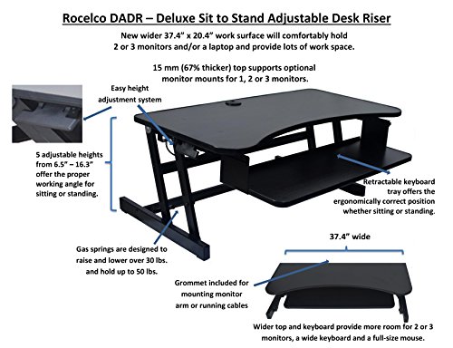 EASY HEIGHT ADJUSTMENTS: Side paddle height lever makes adjusting from sitting to standing easy with smooth height adjustment up to 16.3" above your desk surface with 5 incremental height options