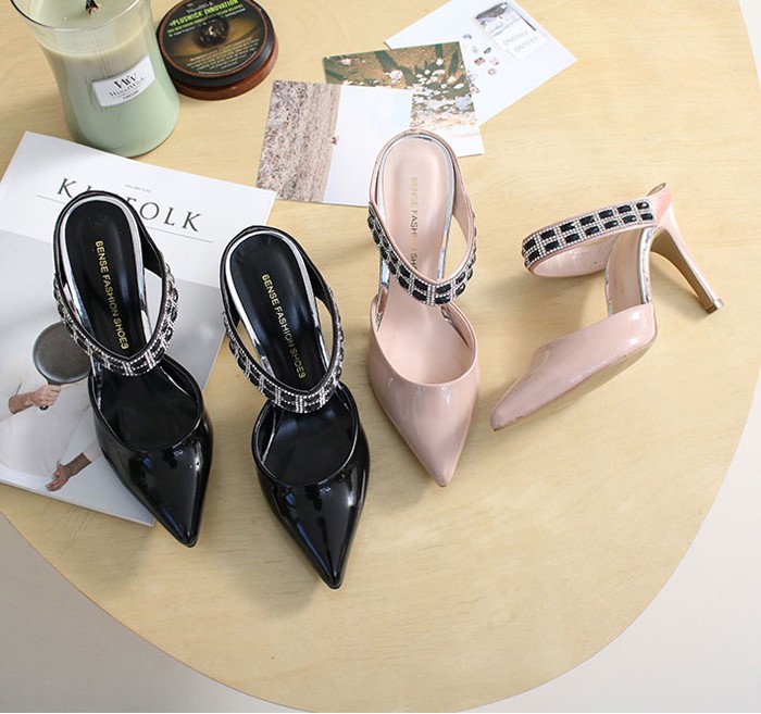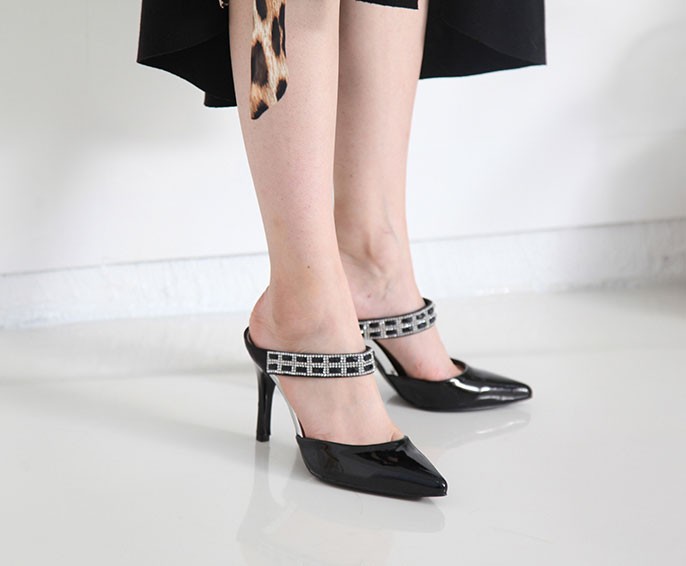 商品名:パンプス レディース ミュール エナメル調 2017 秋 冬 ファッション 靴 婦人靴