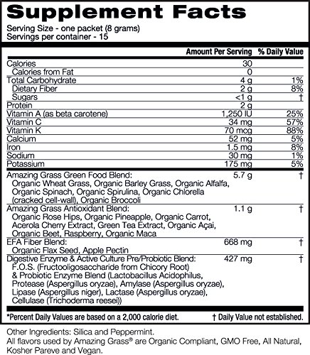 Our most popular blend thoughtfully combines our alkalizing farm fresh greens and wholesome fruits and veggies with nutrient-rich superfoods for a delicious way to feel amazing every day. At Amazing Grass our roots run deep...Back to our family farm in Kansas, where for over 3 generations Amazing Grass has organically grown & harvested the most nutrient-dense greens on earth. Today, we thoughtfully craft our greens with the highest quality, plant-based ingredients curated from like-minded farmers from around the world. Amazing Grass products are a delicious way to nourish your body with the whole food nutrition it needs to feel amazing every day.Feature
