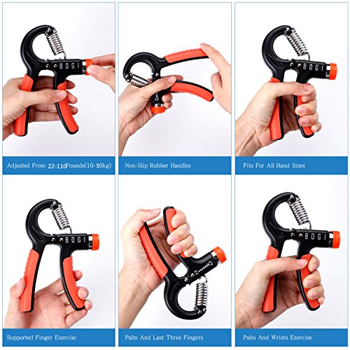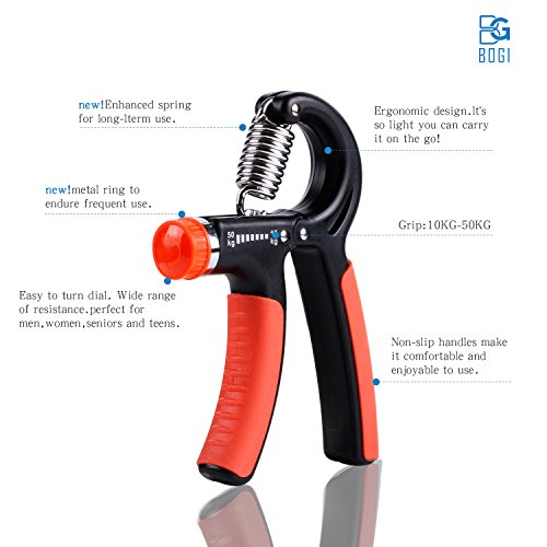 Studio : BOGI Publisher : BOGI Binding : Misc. Product Description Product description: Hand grips strengthener quickly builds up tone and strength in your fingers ,hands, wrists, forearms and anti-aging hand workout.This spring-loaded hand grip exerciser offers varying levels of resistance from 22lbs all the way up to 110lbs making it suitable for men, women, kids and even seniors who want to increase their hand strength and combat arthritic changes.