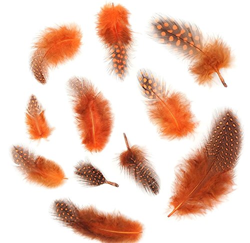 100 Pcs Guinea Plumage Feathers 1"-5" - ORANGE