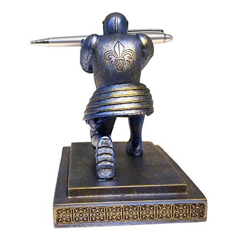 Ozzptuu Decorative Resin Executive Knight Pencil Holder Pen Stand Personalized Desk Organizer Accessories (Blue)