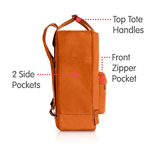 Kanken was launched in 1978 to spare the backs of school children. Back problems had begun to appear in increasingly younger age groups and shoulder bags were popular. Kanken has many simple, clear functions. The backpack soon became a common sight at pre-schools and nature schools around the country. The idea of using a backpack quickly spread, as did Kanken. It is just as popular today, and an excellent choice for school, outings or biking to work. Kanken is made out of durable, lightweight Vinyl on F. The large main compartment with a large opening makes it easy to put in/take out items. Two side pockets and a zippered pocket in the front. Handle at the top, narrow, supple shoulder straps, sitting pad in the pocket in the back and logo that doubles as a reflector.