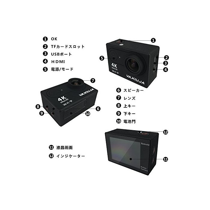원본상품명: アクションカメラ スポツカメラ 「VAXIUJA」 4K 防水 フルHD 170度角レンズ手ぶれ補正 リモコン アクセサリ 充電器1080P高質 手元 ウェアラブルカメラ32GSDカド