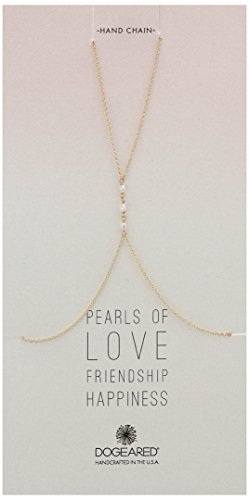 Pearls of love, friendship, and happiness . All a girl needs in her life is love, friends, and plenty of happy moments. Hand chain features three beaded charms. Choose from sterling silver or gold-dipped sterling silver.. Spring ring. Each Dogeared Jewels necklace and bracelet is packaged in a sweet and sturdy gift box. Handcrafted in California. Measurements Width 0 1 in Diameter/Length 7 1 2 in Charm Length 3 1 4 in Charm Width 1 10 in Weight 0.2 ozFeature