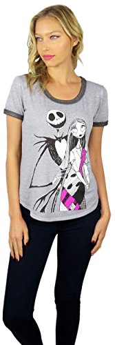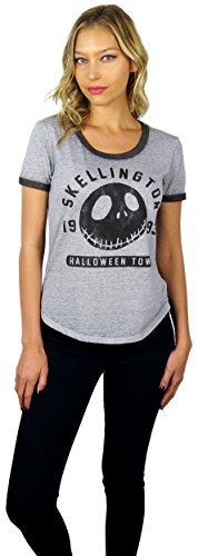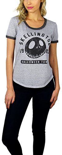 Disney Womens Nightmare Before Christmas Burnout Ringer Tee (Jack Grey, Small)