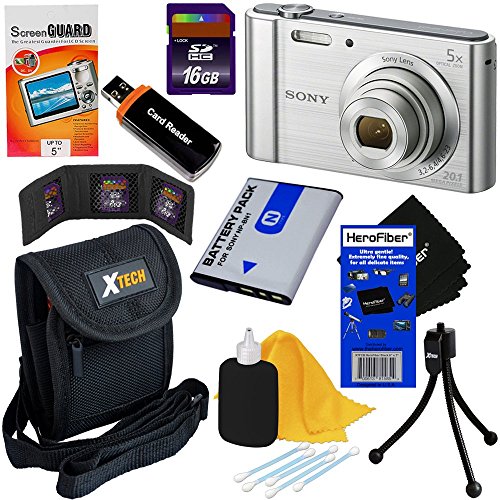 Sony Cyber-shot DSC-W800 20.1 MP Digital Camera with 5x Zoom and Full HD 720p Video, Silver (International Version) + NP-BN1 Battery + 8pc 16GB Accessory Kit w/ HeroFiber Ultra Gentle Cleaning Cloth