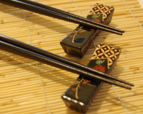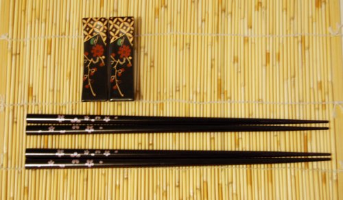 -. Binding : Kitchen -. Brand : Ryu Mei -. Color : Black -. EAN : 4974835072180 -. Feature : 2 Sakura 8-7/8" long Chopsticks / Made in Japan / Non Slippery / 2 Black Plum chopstick rest / a complete set for 2 people -. PackageQuantity : 1 -. ProductGroup : Kitchen -. ProductTypeName : HOME -. Size : 8-7/8" long -. Title : Sakura Chopstick Set