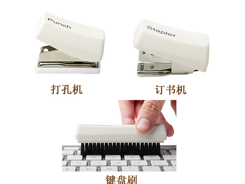 Packaging containing a mini punch 1 Mini stapler 1 keyboardscanning 1 paper clips adsorber 1