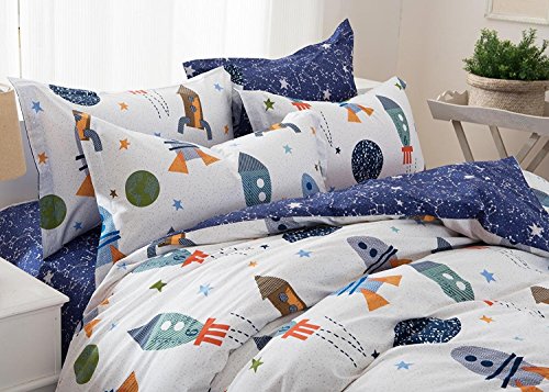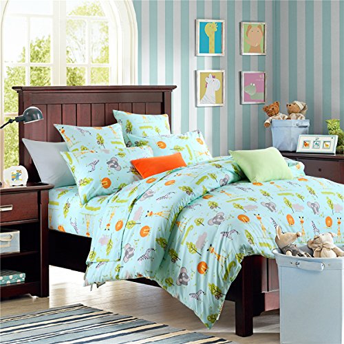 Twin size, 3pcs, 1 duvet cover 67 by 83 inch, 1 flat sheet 71 by 90 inch, 1 sham