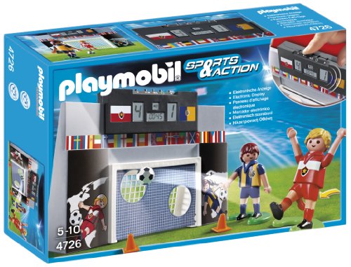 -. Binding : Toy -. Brand : PLAYMOBIL® -. Department : baby-boys -. EAN : 4861323108677 -. Feature : Score the tie-breaking goal with the Soccer Shoot Out / Two figures compete to see who can score the most goals and win the match / The working digital scoreboard with timer helps keep track of points and ensures a fair match / Figures can bend, sit, stand and turn their heads / Set also includes goal area, two orange cones, and soccer ball -. IsAdultProduct : 0 -. IsAutographed : 0 -. IsMemorabilia : 0 -. Label : Playmobil - Cranbury -. LegalDisclaimer : WARNING: Choking Hazard - Small parts & small balls. Not for children under 3 years. -. Manufacturer : Playmobil - Cranbury -. Model : 4726 -. MPN : 4726 -. PackageQuantity : 1 -. PartNumber : 4726 -. ProductGroup : Toy -. ProductTypeName : TOYS_AND_GAMES -. Publisher : Playmobil - Cranbury -. SKU : PX12209056 -. Studio : Playmobil - Cranbury -. Title : PLAYMOBIL Soccer Shoot Out -. UPC : 658109684210 -. Warranty : 30 day warranty against manufacturer defects
