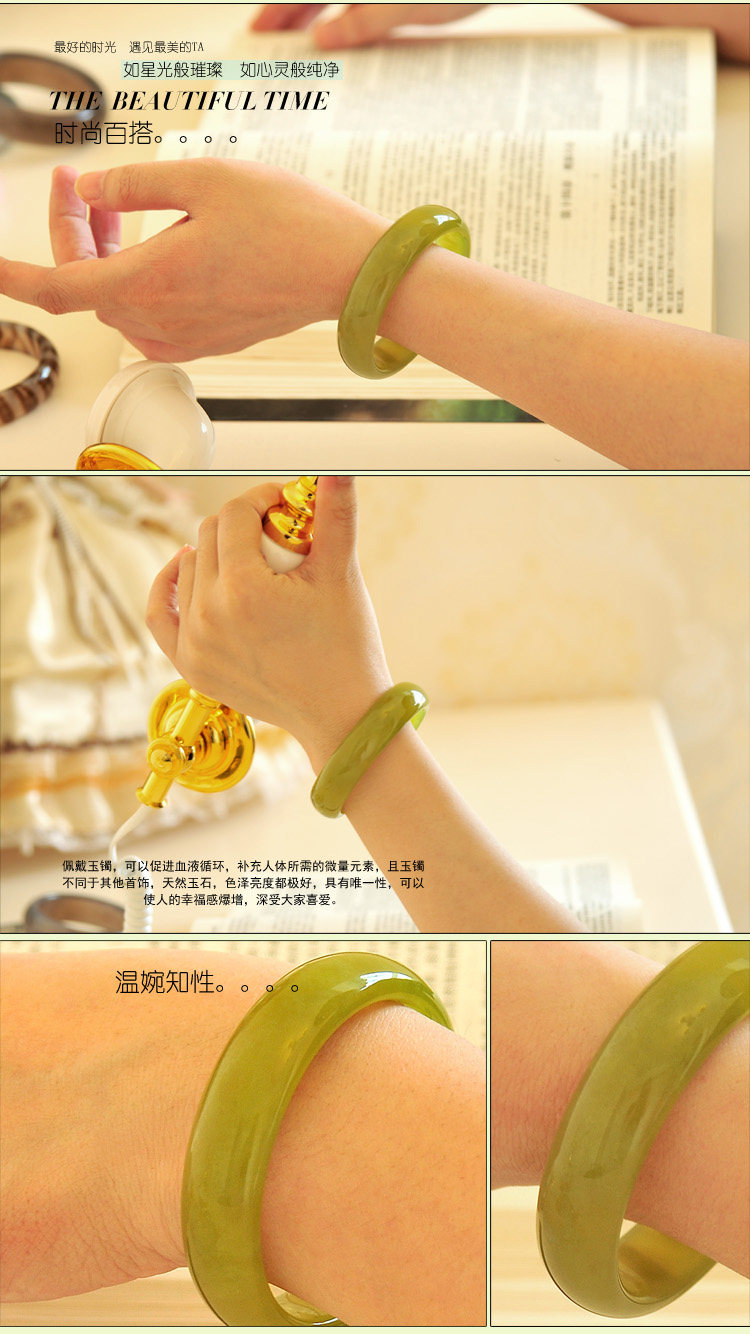 石仙 绿色岫玉手镯玉镯子冰种飘花水沫玉女手镯