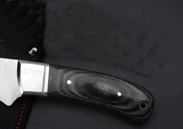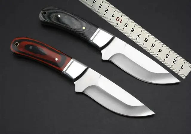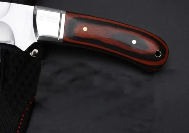 상품 내용 유형: 고정 블레이드 나이프 전체 길이: 210 미리메터 블레이드 길이: 96 미리메터 핸들 길이: 114 미리메터 블레이드 폭: 33 미리메터 블레이드 두께: 3.1 미리메터 블레이드 재질: 5Cr13Mov 핸들; 스틸 + 컬러 나무 경도: 상당 56HRC 무게: 250 그램 표면: 새틴 칼집: 나일론 칼집 제품 사진