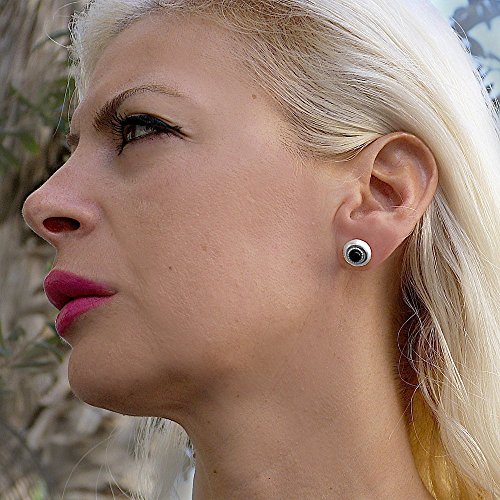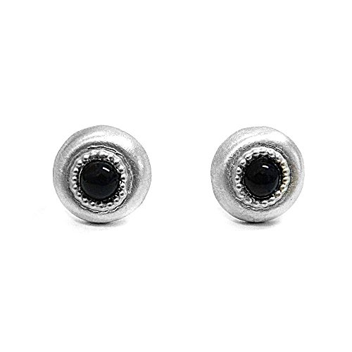 -. Title : 12mm Genuine Natural Black Onyx Silver Stud Earrings & 5mm Cabochon Cut Black Onyx Women's Gift Charm Elegant