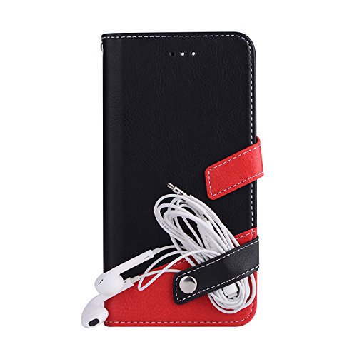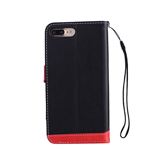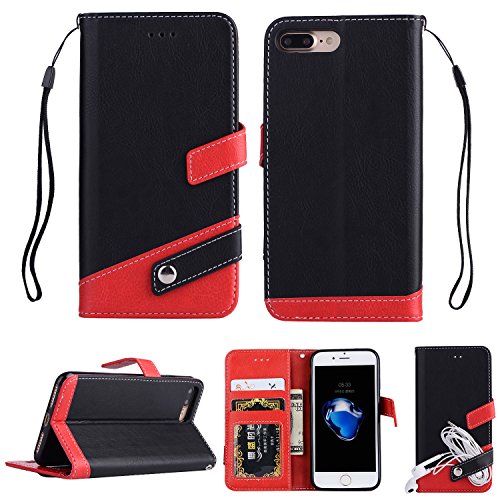 Taoya iPhone 8 plus wallet case,iPhone 7 plus wallet case PU leather magnetic snap closure folio cover with earphone strap holder and card slot 360 shockproof for 5.5 inch iPhone 7 plus 8 plus black