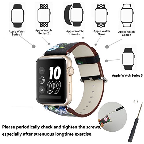 -. Binding : Misc. -. Brand : YOSWAN -. Feature : Bracelet for Apple Watch,British rural style Flower Genuine Leather for Apple Watch Strap Band series 1 and series 2 and series 3(Suitable for:iwatch 38/42mm) / Material:Soft PU Leather.Comfortable and durable / Length of 38mm:11.5-15.5cm.Length of 42mm:12-17.5cm(Kindly Note: Please measure your wrist before purchasing it) / Precise cut holes to fit well for most wrist / Note:watch Not included -. IsAutographed : 0 -. IsMemorabilia : 0 -. Label : YOSWAN -. Manufacturer : YOSWAN -. ProductGroup : Sports -. ProductTypeName : SPORTING_GOODS -. Publisher : YOSWAN -. Studio : YOSWAN -. Title : Bracelet for Apple Watch, National Black White Floral P.R.Inted Leather Watch Band 38mm 42mm Strap for Apple Watch Flower Design Wrist Watch Bracelet