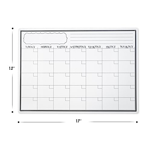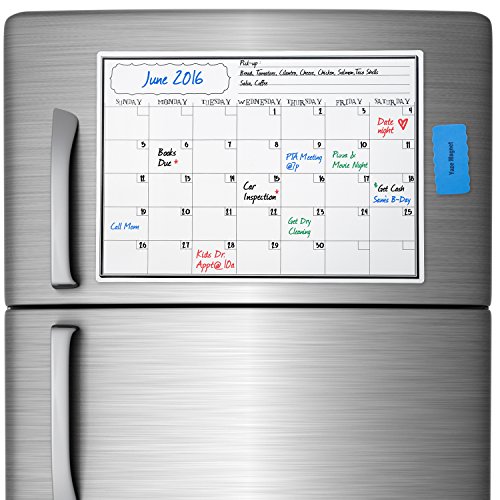 Monthly Magnetic Calendar for Refrigerator | Dry Erase White Board For Kitchen Fridge With Strong Magnet | 17"X12" | Includes 4 Markers and 1 Magnetic Eraser | Perfect Planner To Stay Organized