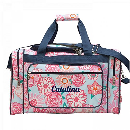 -. Feature : Custom made just for you; P.R.Inted on demand by very nice people in Columbus, Ohio, USA / Send your dancer off to practice and competitions with this big, trendy duffel bag; Height: 12 inches, Width: 20 inches, Depth: 10 inches / With all of the right features, you'll be able to fit all of your dance must-haves inside this sporty bag; this patterned duffel includes a zipper top and zipper pockets on the front and on each end / Comfort comes first, with an adjustable shoulder strap and a double carry handle with velcro to make life a little easier / Looking for a unique and cute duffel bag to travel with? Get this Catalina floral bag that has your name on it! Great for anyone who loves weekend getaways, vacations and more. It's the perfect size to carry on a plane for a weekend trip.