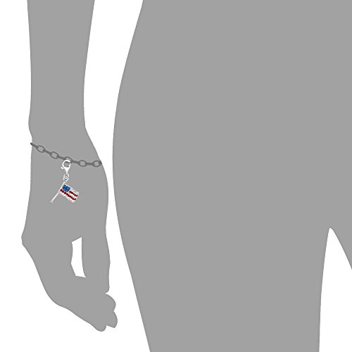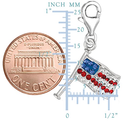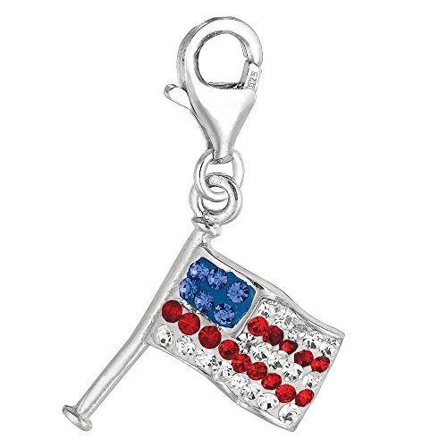 -. Title : Sterling Silver Crystal Clip On American flag Charm