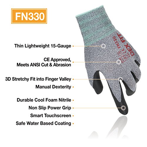 Nitrile Work Gloves FN330, 3D Comfortable Stretchy-Fit, Power Grip, Safe Breathable Durable Water Based Foam, Machine Washable Thin Nylon, 3 Pairs Pack, Medium, Grey