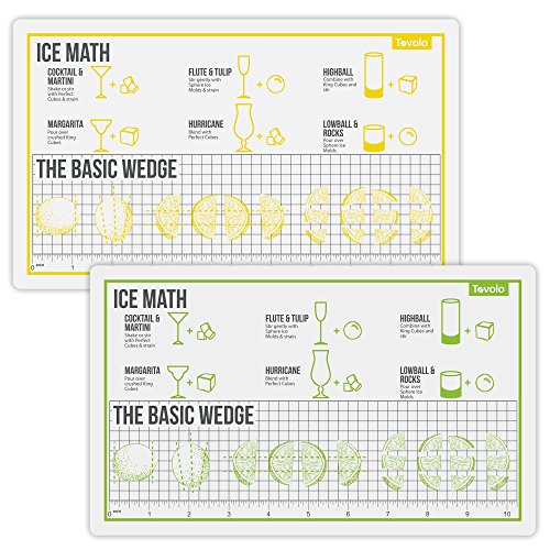 Ice Math = cocktail fun! A trustworthy companion for your bar, this handy Tovolo Ice Math Ice Mat guides you to a perfect wedge for your cocktail pleasure and the non-slip grip keeps this bar mat in place. These mats come with an Ice cube guide for classic cocktails along with basic bartender wedge guide for the perfect cut every time. These ice math ice mats measure 6.75" x 11.25" Inch and come in a set of 2 - one green and one yellow.Feature