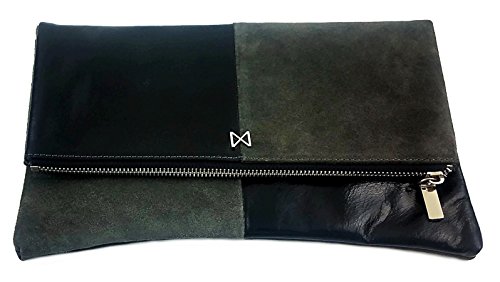 Colorblock Suede and Leather clutch. 100% genuine suede and leather. Fully lined with easy-to-clean, stain-resistant, durable nylon fabric.