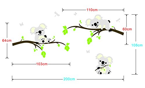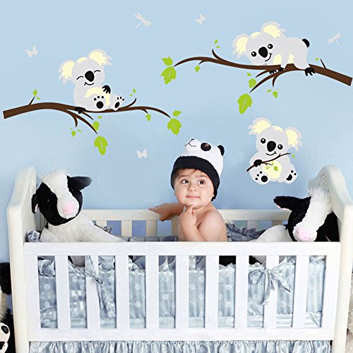 ufengke Cartoon Animals Koala Green Branches Wall Decals, Children's Room Nursery Removable Wall Stickers Murals