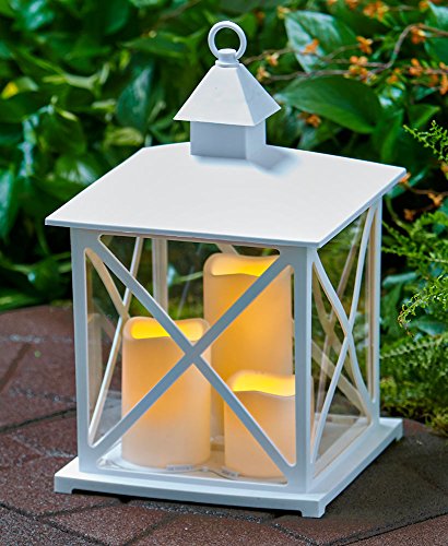-. Binding : Kitchen -. Brand : GetSet2Save -. Feature : Comes with 3 flameless LED candles / on/off switch has a timer function that turns the lights on for 6 hours, then off for 18 / Polypropylene and PVC / 9" sq. x 15"H / Requires 3 "AAA" batteries -. IsAutographed : 0 -. Label : GetSet2Save -. Manufacturer : GetSet2Save -. ProductGroup : Home -. ProductTypeName : HOME -. Publisher : GetSet2Save -. Studio : GetSet2Save -. Title : Outdoor Triple Candle Lantern with Timer