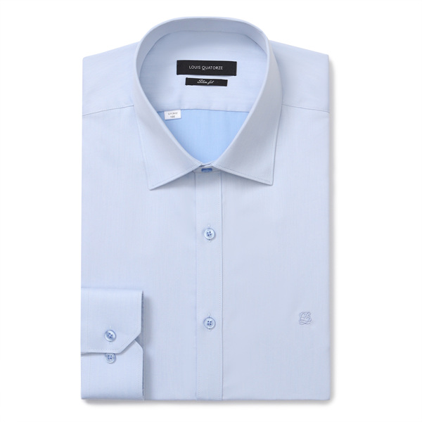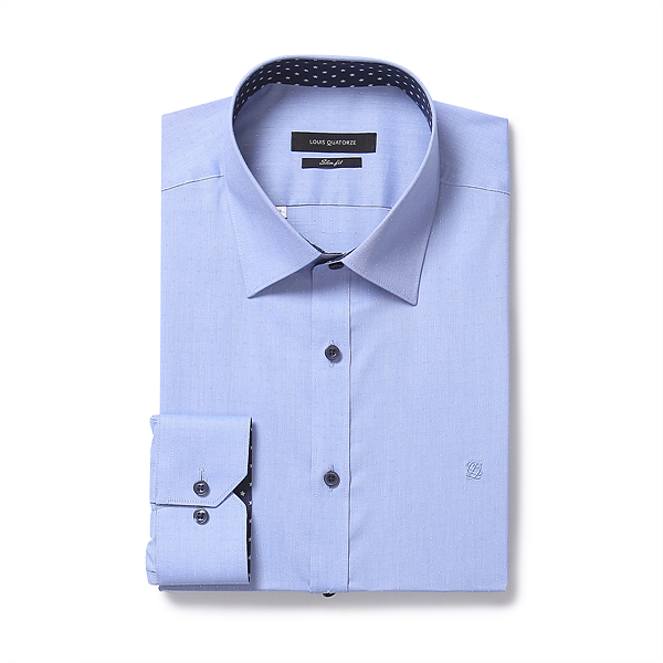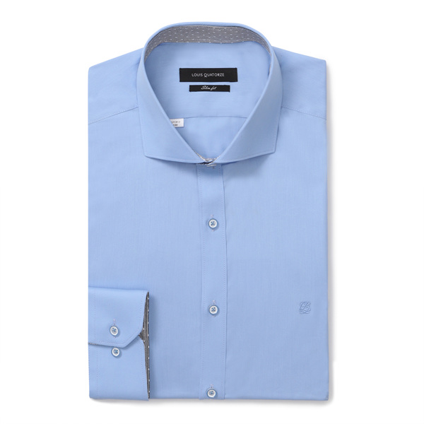 긴소매 블루 트윌 솔리드 슬림핏 와이드카라 셔츠