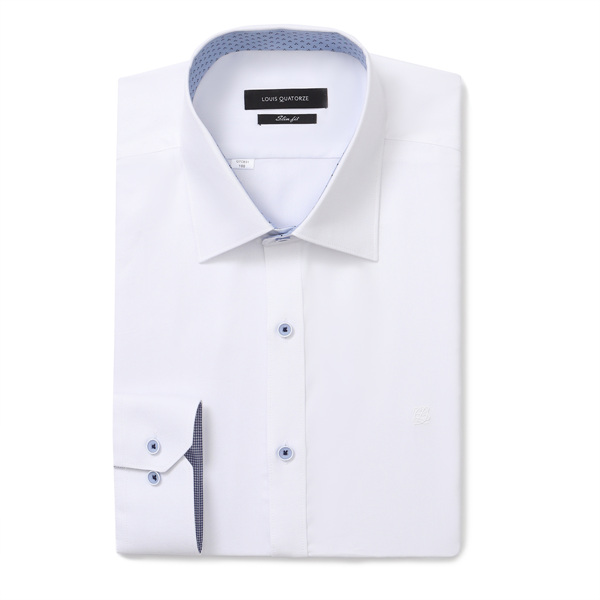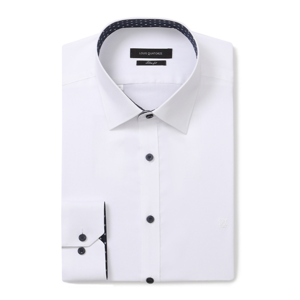 긴소매 화이트 도트도비 슬림핏 셔츠