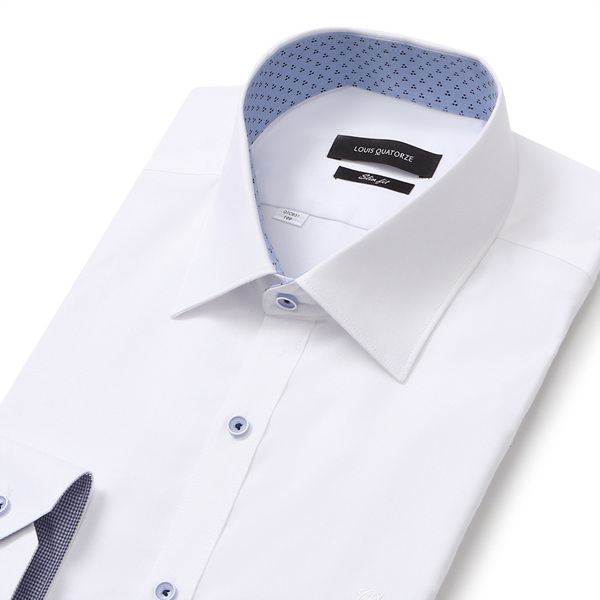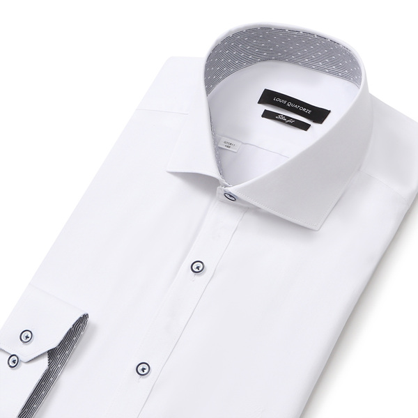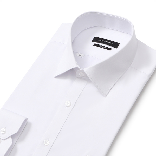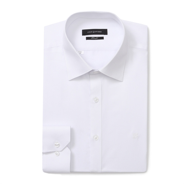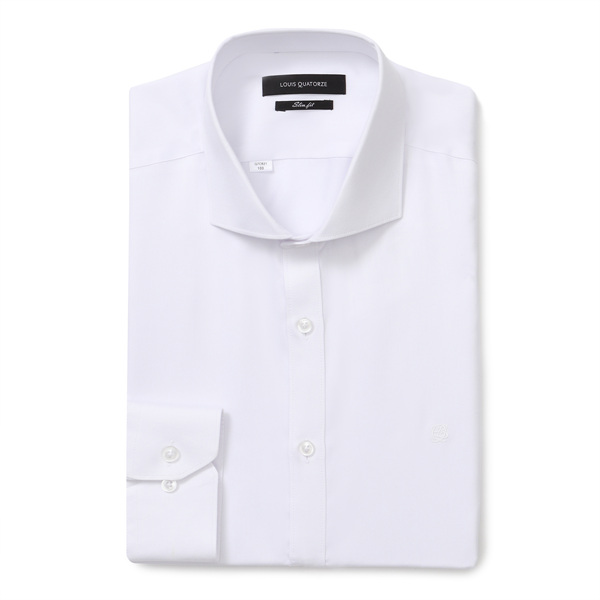 긴소매 화이트 트윌 솔리드 슬림핏 와이드카라 셔츠