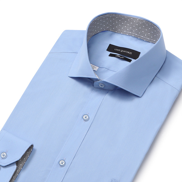 긴소매 블루 사틴 솔리드 슬림핏 기본셔츠