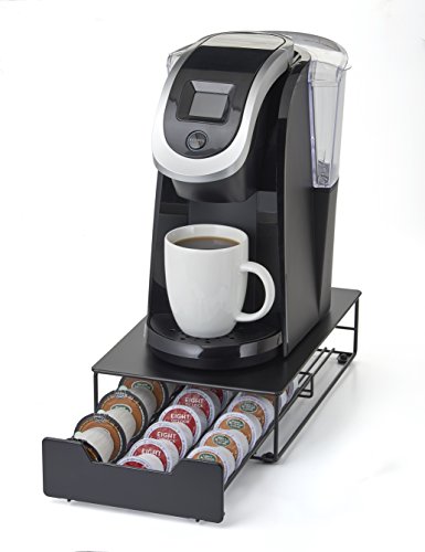 The Keurig Approved Mini Storage Drawer for Keurig 2.0 will store both you favorite K-Cup packs and K-Carafe packs. The storage drawer is the perfect accessory to store all of your favorite coffee flavors. The drawer is designed to sit underneath your Keurig hot brewer, taking up very little of your precious counter space.