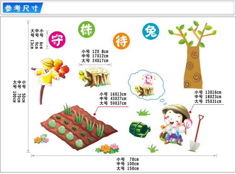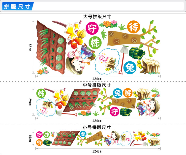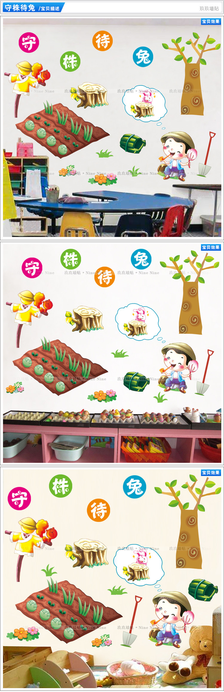 幼儿园小学校区角墙面装饰墙贴卡通寓言故事守株待兔贴纸贴画