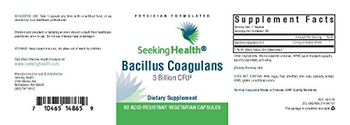 Each capsule of Bacillus Coagulans by Seeking Health provides 3 billion CFU of Bacillus coagulans IS-2, a spore-forming, lactic acid-producing probiotic "soil organism." This probiotic strain may help support a healthy intestinal environment and digestive comfort.* Because it is highly resilient to different temperatures and pH levels, it is also an ideal probiotic for travel use.* Bacillus coagulans, once known as Lactobacillus sporogenes, is unique in that it exhibits some characteristics of both the Lactobacillus and Bacillus genera. This species protects itself with a tough, endospore coating, which enables the bacteria to withstand a relatively wide range of environmental conditions. This feature not only makes Bacillus Coagulans an excellent probiotic to take traveling, but also helps to preserve viability of the organisms through the various pH levels of the digestive system.* Key Benefits and Actions: - May help support a healthy intestinal environment* - May help support digestive comfort* - May help support normal carbohydrate fermentation processes in the intestines, as part of a healthy digestive process* Note: CFU = Colony Forming Unit. CFU value at time of packaging. * These statements have not been evaluated by the FDA. This product is not intended to diagnose, treat, cure, or prevent any disease.Feature