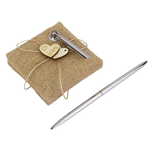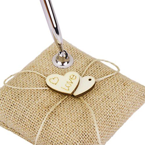 LEORX Burlap Wooden Hearts Wedding Pen Stand Set for Wedding Bridal