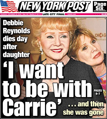 NEW YORK POST DECEMBER 29 2016 DEBBIE REYNOLDS DEAD TRIBUTE NEWSPAPER