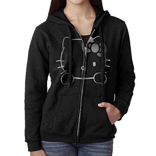 Women Hello Kitty Vinyl Decal Platinum Logo Hoodie Sweatshirt Black