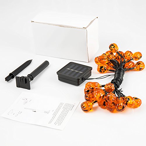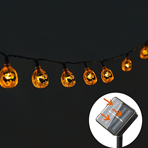 Halloween Outdoor Light, Hsctek Solar String Light with 8 Lighting Model, Waterproof & Light Senor for Yard, Garden(17ft,25 LED)(Warm,Jack-o'-lantern)