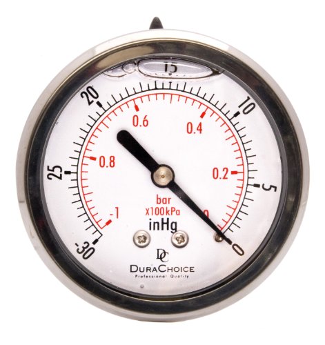 2-1/2" Oil Filled Vacuum Pressure Gauge - Stainless Steel Case, Brass, 1/4" NPT, Center Back Mount Connection -30HG/0