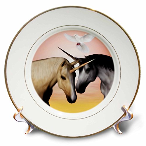 3dRose cp_53813_1 Lovely Unicorns in Love, with a Dove Porcelain Plate, 8-Inch