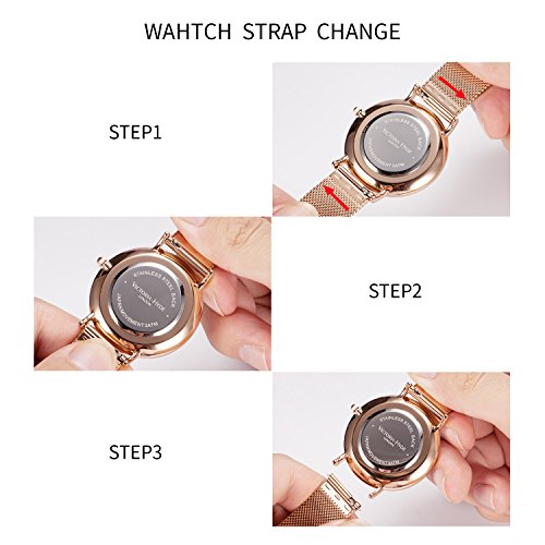 - Watchband material: stainless steel; replaceable milanese strap design, easy to switch watch band by yourself.