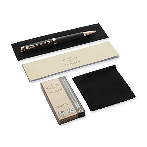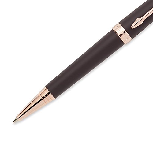 -. Feature : Finished with a soft brown rubber effect lacquer / Pink Gold finish on trims for a trendy rendering / Solid gold nib (with pink gold flash) for the ultimate experience in writing comfort and high precision lines / Manually assembled to ensure flawless quality / Ready for gifting in a premium Parker Gift Box