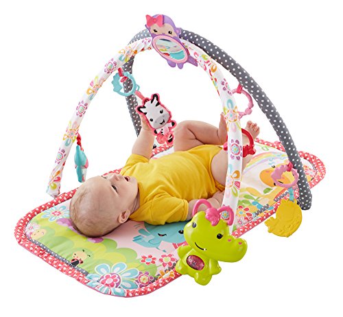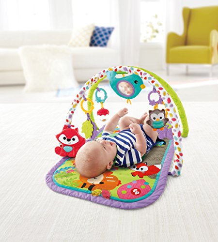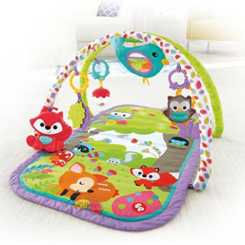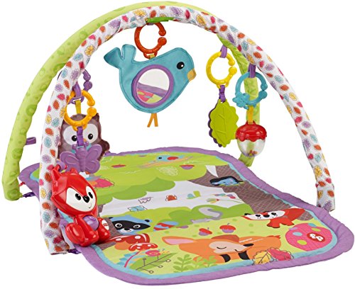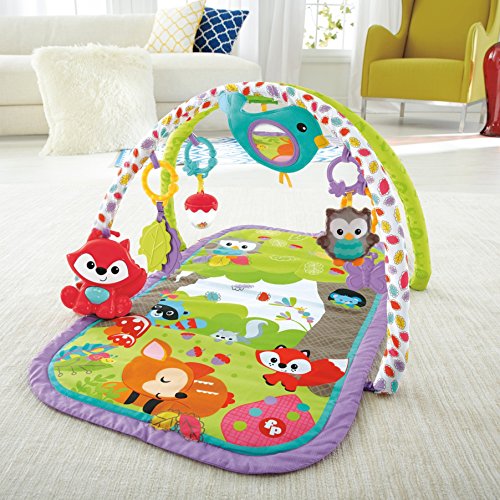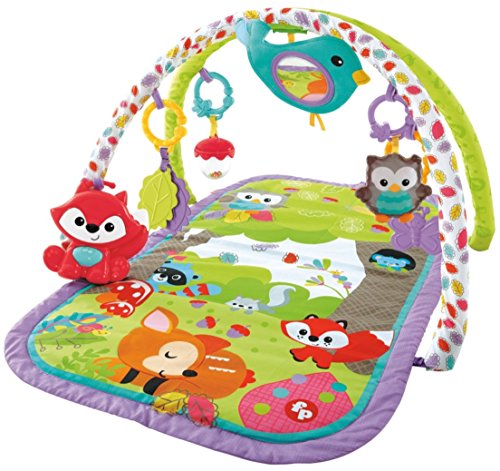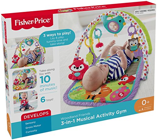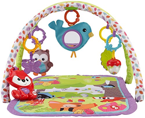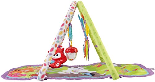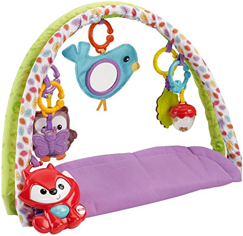 Portable activity gym keeps baby busy with toys, sounds, and music. Five linkable toys plus an adorable take-along musical fox with fun sounds and two music modes keep baby busy on a comfy, padded, portable activity play mat with two soft play gym arches overhead. Music plays for up to 10 minutes in long play music mode, and you can rearrange the linkable activity toys to change the experience for baby, every time she plays.Feature